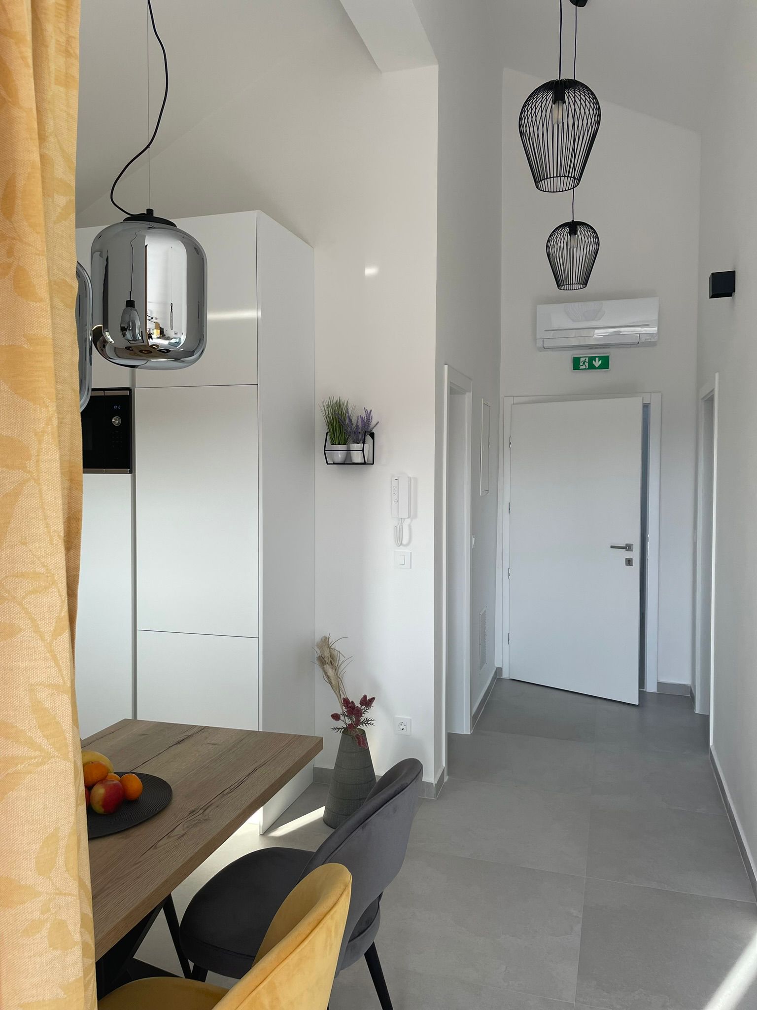 Ovaj apartman se sastoji se od 1 dnevne sobe, 1 zasebne spavaće sobe i 1 kupaonice s walk in tušem i sušilom za kosu. Sve sobe su klimatizirane i opremljene sa flat screen smart televizorima. Gosti će pronaći ploču za kuhanje, hladnjak, perilicu posuđa,  aparat za čaj i kavu, mikrovalnu pecnicu, kuhinjski pribor u potpuno opremljenoj kuhinji. Apartman također ima vanjski roštilj. Uz terasu s pogledom na bazen, ovaj apartman također nudi privatno parking mjesto za vase vozilo. Jedinica nudi 2 kreveta. Jedan bracni krevet i jedan kauc na razvlacenje. Djeca su dobro dosla u nasim apartmanima Rimac. Maksimalni broj gostiju u ovom apartmanu su: 2 odraslih & 2 djece do 18 godina.